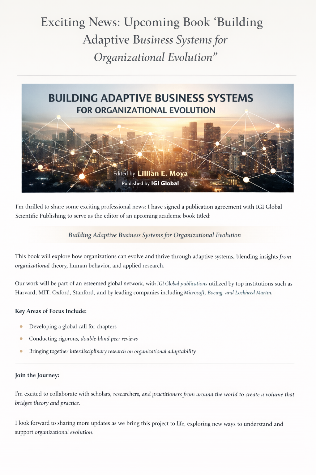 The work will be authored by Lillian Moya, Ph.D., founder of The Ellipsis, whose research explores narrative practices, culture, and human-centered systems within organizations and communities.